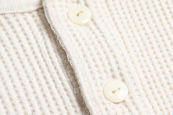 ワッフルはサーマルと同様の編みですが、サーマルよりも型崩れが少なく、肌への接触面が少ない為肌離れもよく空気を溜めやすい特徴があります。